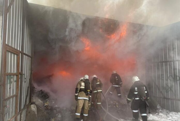 Алматының Жетісу ауданында Москвина көшесінің бойында тауарлар сақталған қойма өртенді.